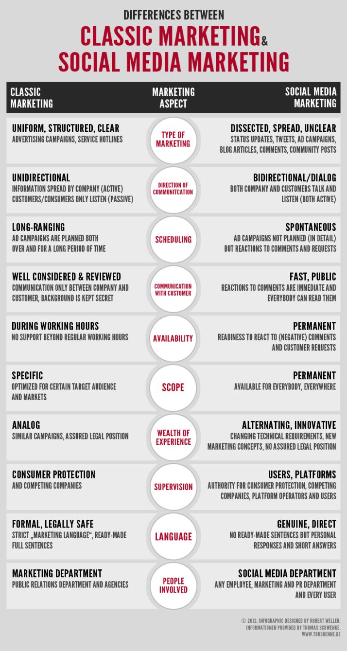 In order to efficiently leverage the power of new technology, marketers need to understand the strengths and weakness of the mediums. As with all change, not everyone is an early adapter. In order to reach trendsetters and laggards alike, classic marketing and social media marketing need to integrate the strengths and weaknesses of their various aspects to create a solid team.