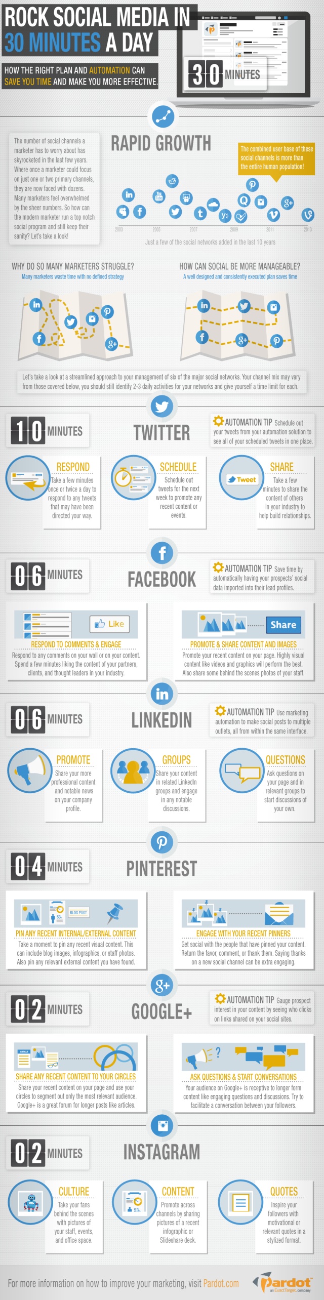 Their followers are where they need to start, as only 1 external reference, once, in the beginning of October, was brought to the Facebook page outside of Facebook. If Facebook is the platform they would like their followers to go to, we need to work on their Search Engine Optimization to get them there. One way we can increase their ranking, was mentioned above by increased posting across their various platforms. Traditionally, Google+ would increase a site’s SEO, as they are affiliated with the major internet search engine. (That search engine is Google, in case there was a doubt in your mind.) Moving forward, we can plan out future posts. This is a busy couple, and time spent focused on planning now, will make the process easier in the future. The posts can then be tailored to send the same message out across multiple channels. An increase in content on the internet will increase their visibility to potential fans. The below infographic outlines an efficient way to touch all platforms in a short amount of time.