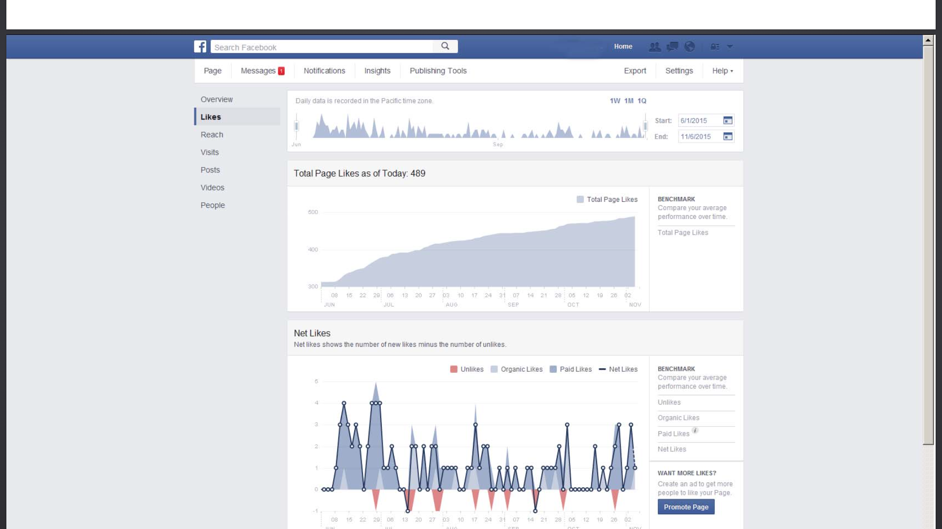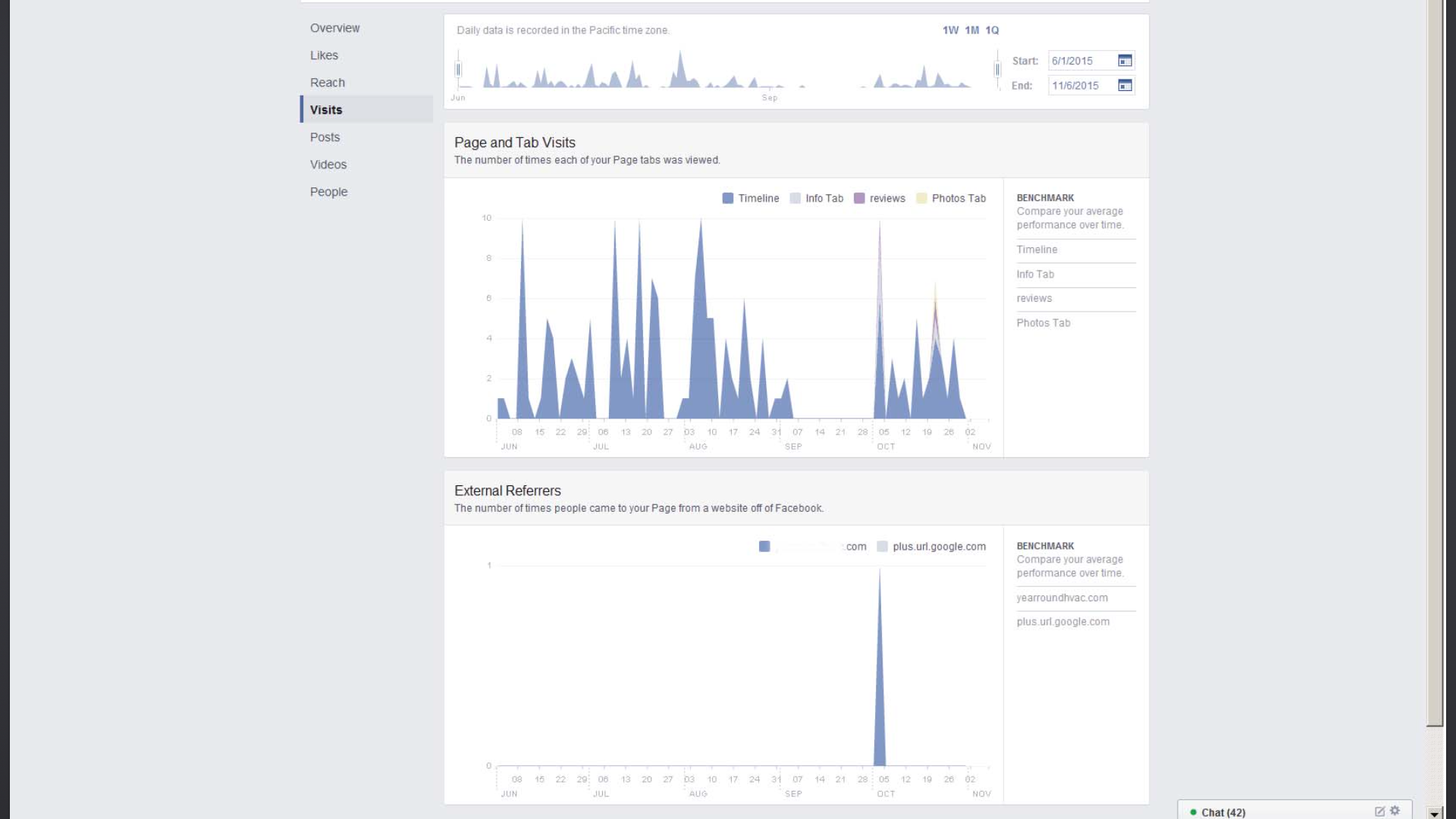 XYZ Company has a Facebook page, website, Twitter account, Yelp page and Google+page. They do not yet have an email database. Why not? The company is focusing on business in a 30 mile radius of their physical location, and have started with a traditional direct mail approach. Over this course, we have seen that direct emails generally convert more recipients to sales than other forms of social media. Before we spend this couple’s hard earned money, let’s take a look at their Facebook Analytics to make sure we are able to get XYZ the most impact for their dollar.