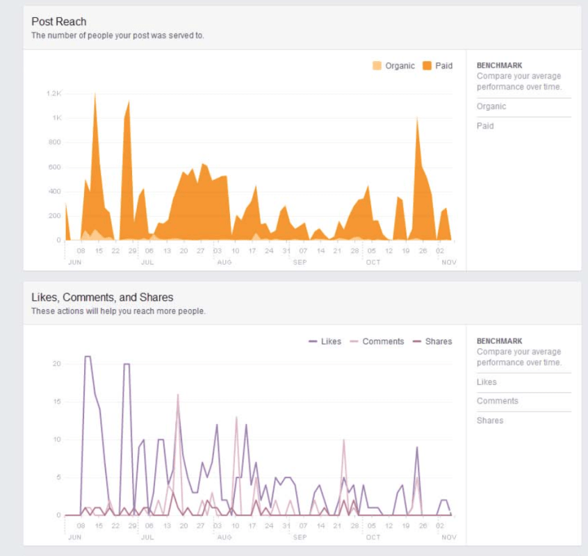 The good news is that their number of page likes is growing and the do have some engagement from their audience. Are they getting record setting numbers? Not at the moment. With the current scope of their company’s abilities, we want to grow their audience proportionately to their goals.